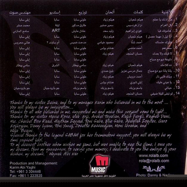 Arranged By – طوني سابا Composed By – بليغ حمدي Engineer – ايلي سابا Featuring – Sabah Lyrics By – مرسي جميل عزيز |