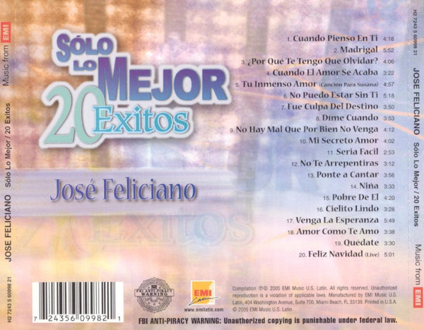 José Feliciano – Solo Lo Mejor: 20 Exitos