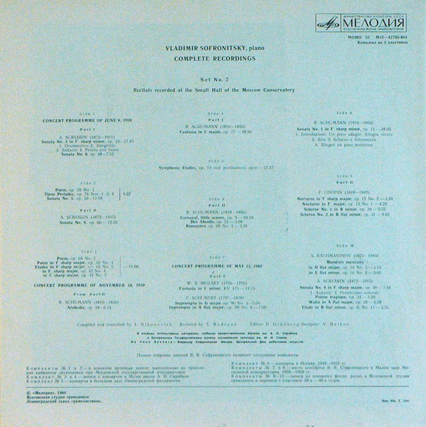 Vladimir Sofronitsky – Complete Recordings (Комплект № 7 = Set No. 7)