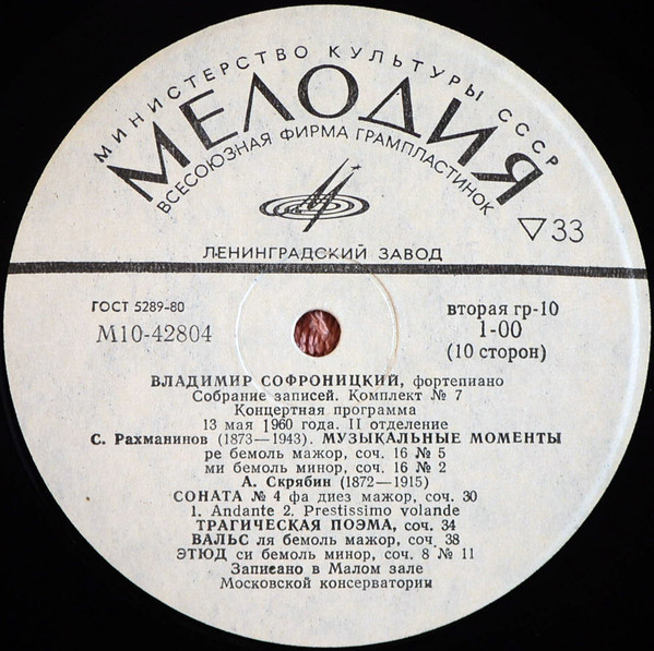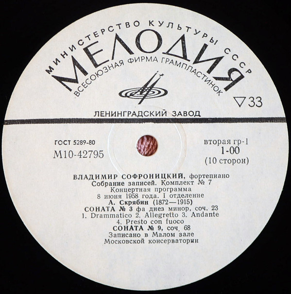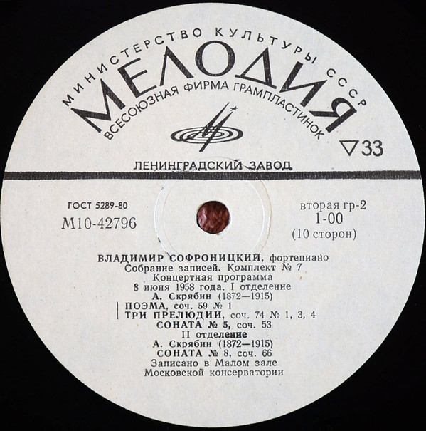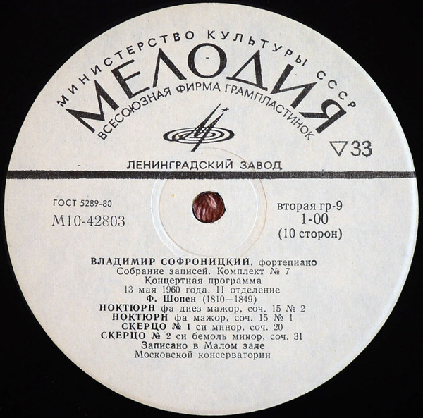- Piano – Vladimir Sofronitsky