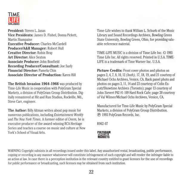- Manufactured For – Time Life Music
