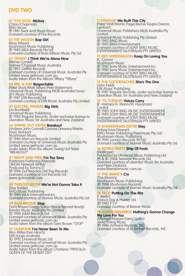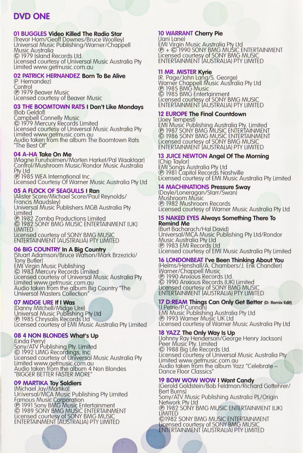 - Licensed From – Sony BMG Music Entertainment (Australia) Pty Limited