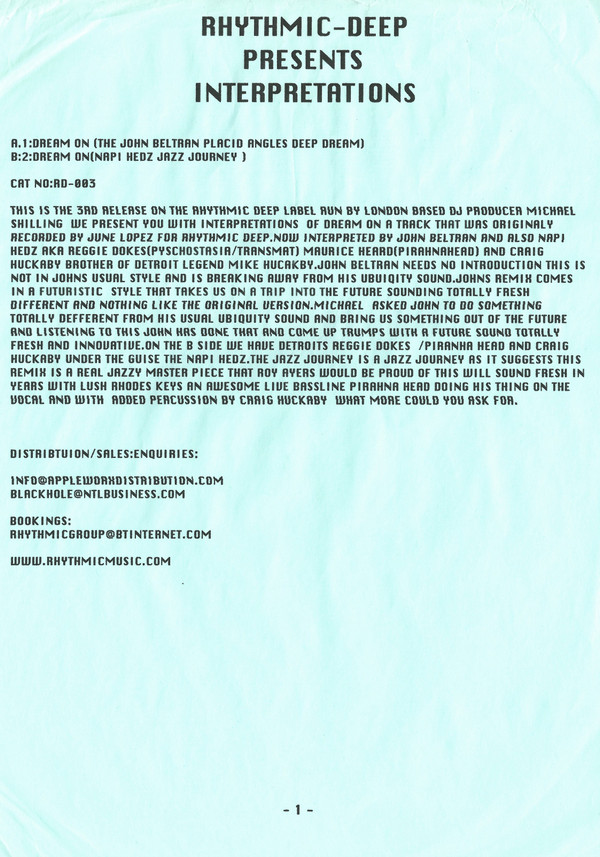 | Лейбл: | Rhythmic Deep – RD-003 |