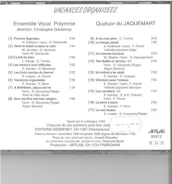 Quatuor Du Jaquemart – Vacances Organisées (Art Choral 1995)