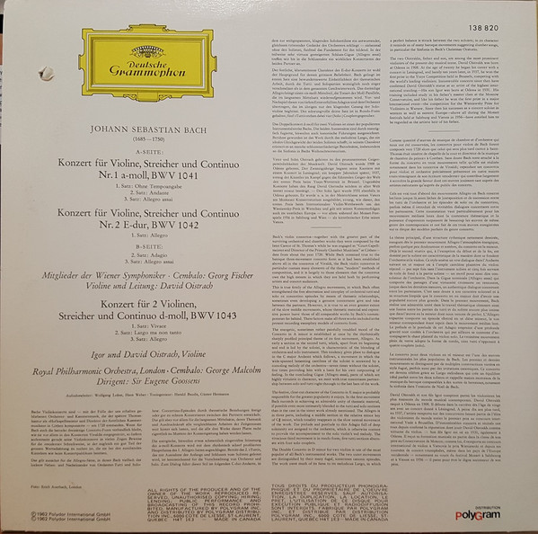 Violinkonzerte In A-moll Und E-Dur / Konzert Für Zwei Violinen In D-Moll