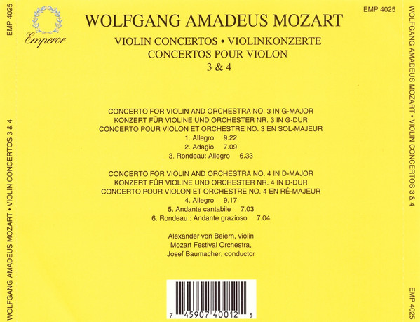 Wolfgang Amadeus Mozart – Violin Concertos 3 & 4