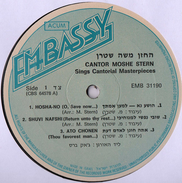Moshe Stern – Sings Cantorial Masterpieces