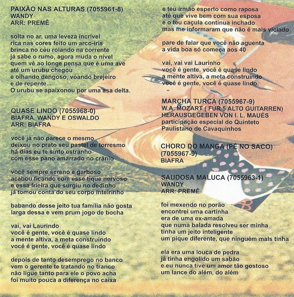- Cavaquinho, Acoustic Guitar, Vocals – Wandi Doratiotto