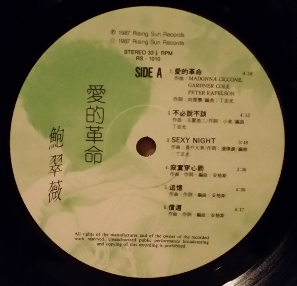 Arranged By – 丁志光 Lyrics By – 向雪懷 Music By – Gardner Cole Music By – Madonna Louise Ciccone Music By – Peter Rafelson Recorded By, Mixed By – 蔡顯樂 |