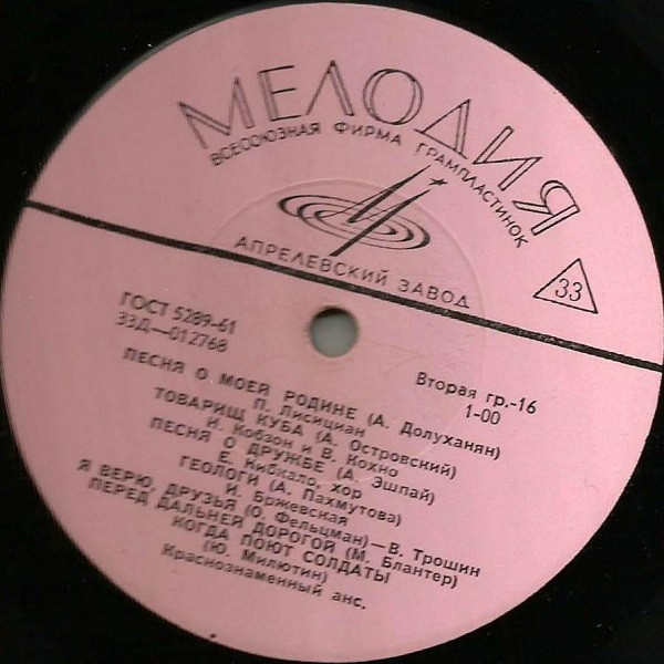 Лейбл: Мелодия – 33Д—012767 Мелодия – 33Д—012768