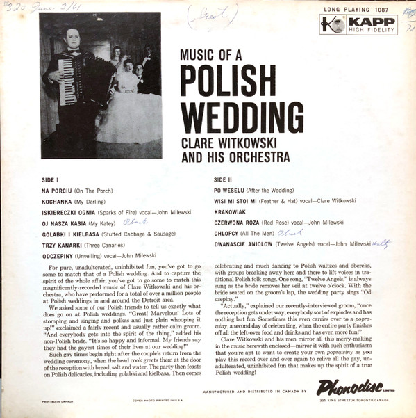 Clare Witkowski & His Orchestra – Music Of A Polish Wedding