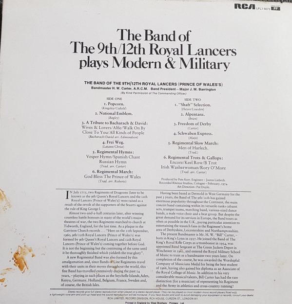 The 9th/12th Royal Lancers – The Band Of The 9th/12th Royal Lancers Plays Modern & Military