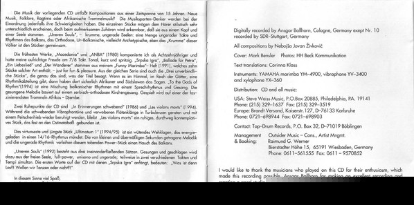- Marimba, Vibraphone, Xylophone, Djembe, Voice – Nebojša Jovan Živković