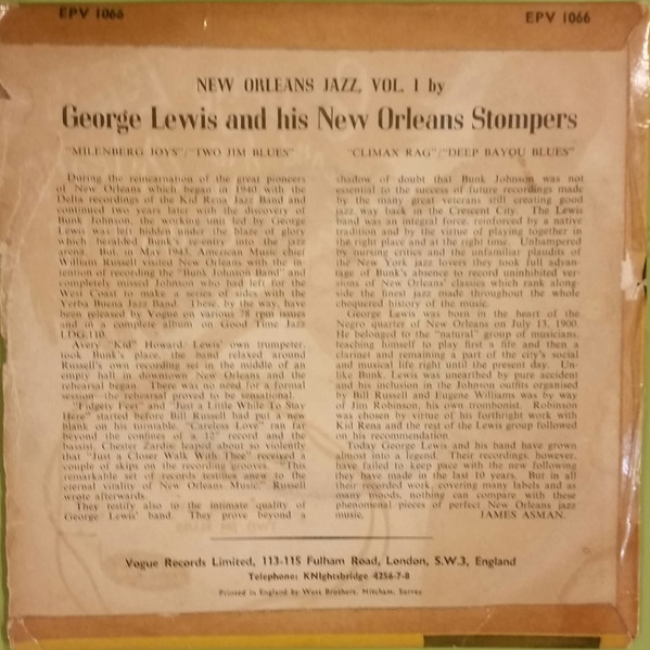 George Lewis And His New Orleans Stompers – New Orleans Jazz, Vol 1