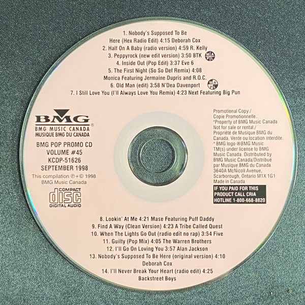 Various – BMG Pop Promo CD - Comp. #45 - September 1998