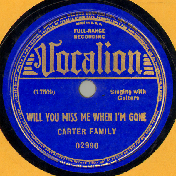 The Carter Family – Will You Miss Me When I'm Gone / Broken Hearted Lover
