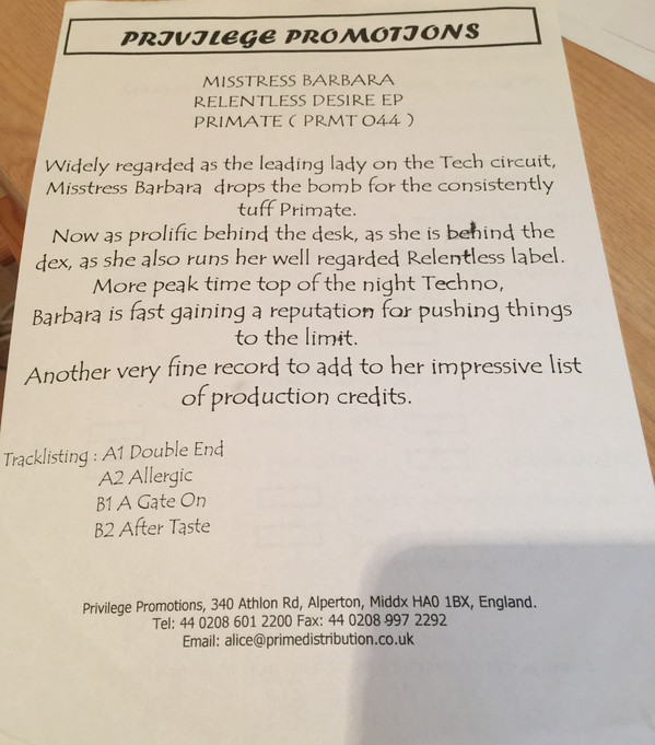 Misstress Barbara – Relentless Desire EP