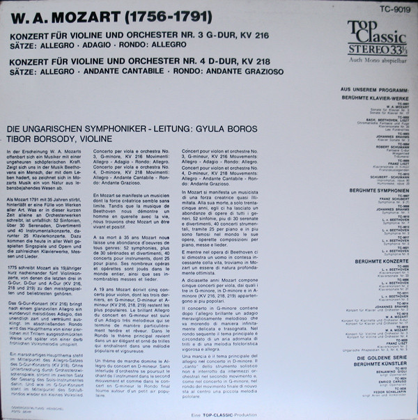 Wolfgang Amadeus Mozart – Konzert Für Violine Und Orchester Nr.3, G-Dur, KV 216 / Konzert Für Violine Und Orchester Nr.4, D-Dur, KV 218