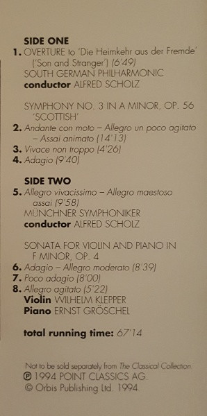 | A1 | Overture To 'Die Heimkehr Aus Der Frernde' ('Son And Stranger') |