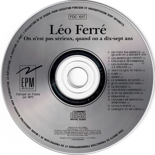 Léo Ferré – On N'Est Pas Sérieux, Quand On A Dix-Sept Ans