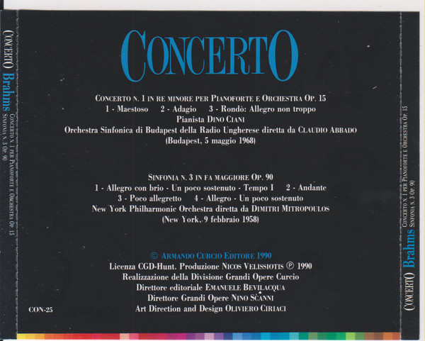 Johannes Brahms – Concerto N. 1 Per Pianoforte E Orch. Op.15, Sinfonia N. 3 Op. 90