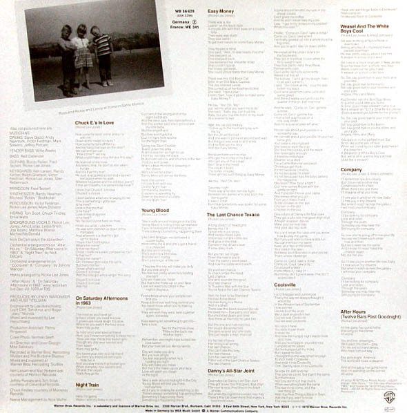 - Backing Vocals, Keyboards, Percussion, Guitar, Arranged By, Written By – Rickie Lee Jones