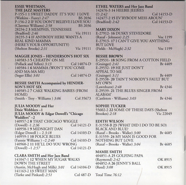 Essie Whitman The Jazz Masters Vocals [Miscredited] – Essie Whitman Vocals [Uncredited] – Ethel Ridley |