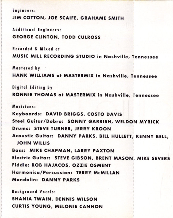 - Backing Vocals – Shania Twain