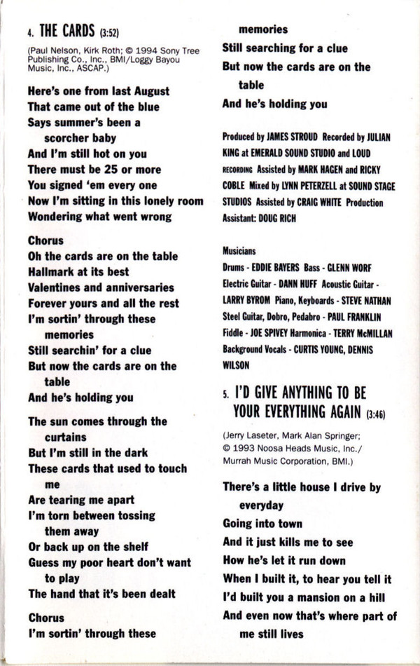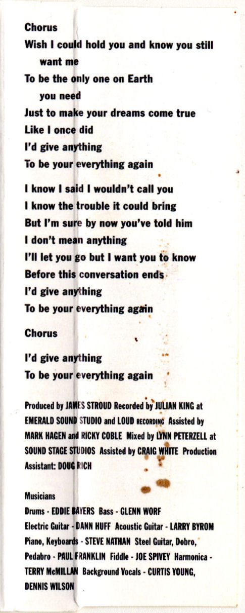 | B5 | I'd Give Anything To Be Your Everything Again |