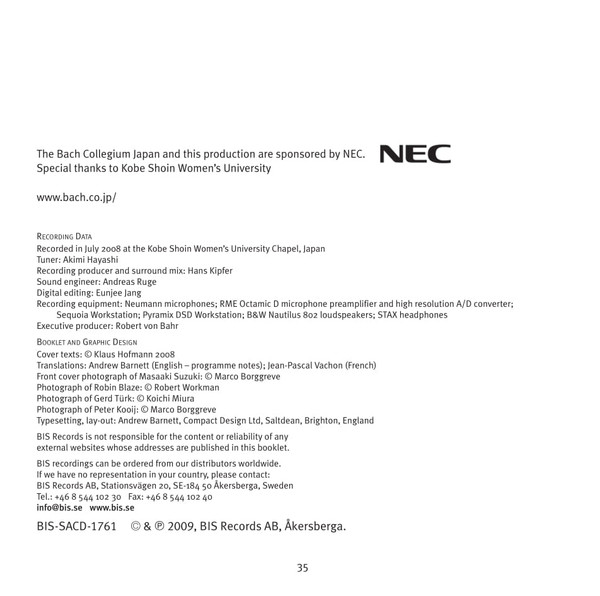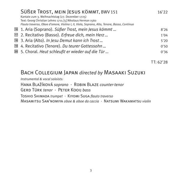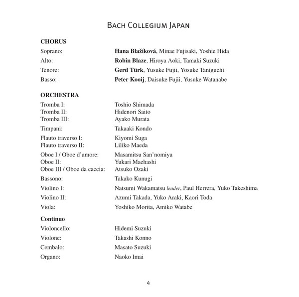 - Orchestra, Chorus – Bach Collegium Japan