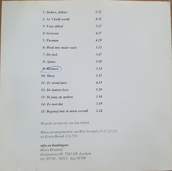 - Lyrics By, Music By, Lead Vocals, Guitar, Alto Saxophone, Percussion, Producer – Jan Ottink