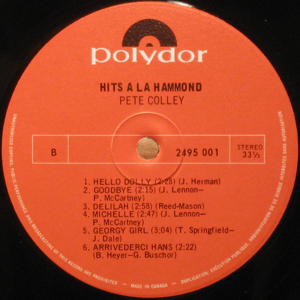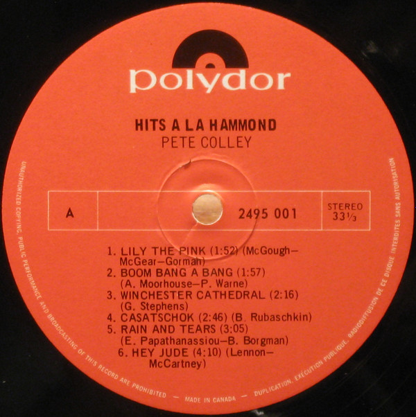 - Manufactured By – Polydor Records Canada Limited