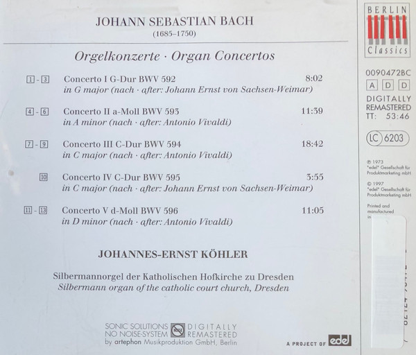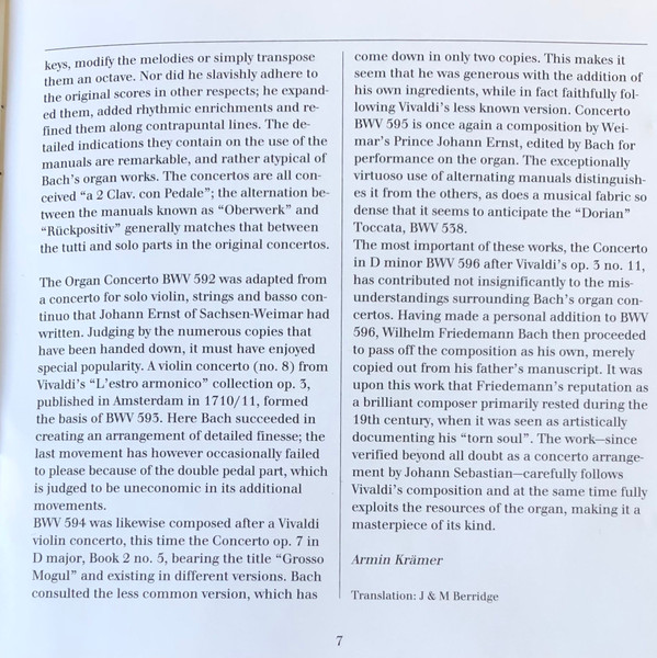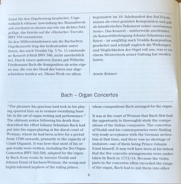 Johann Sebastian Bach – Orgelkonzerte Organ Concertos BWV 592-596