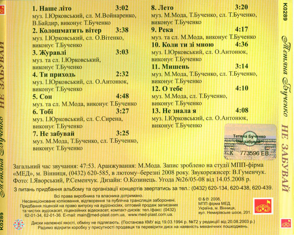 Тетяна Бученко – Не Забувай