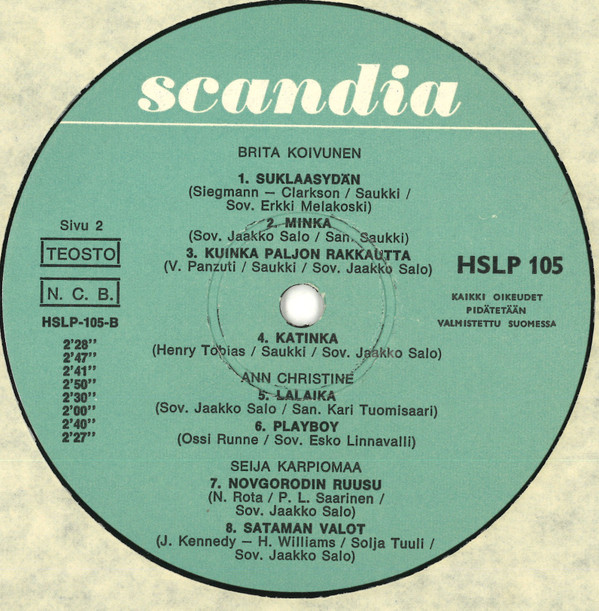 Brita Koivunen Erkki Melakosken Yhtye Arranged By – Erkki Melakoski Lyrics By [Finnish] – Saukki Written-By – Harry Clarkson Written-By – Dorothy Siegmann |