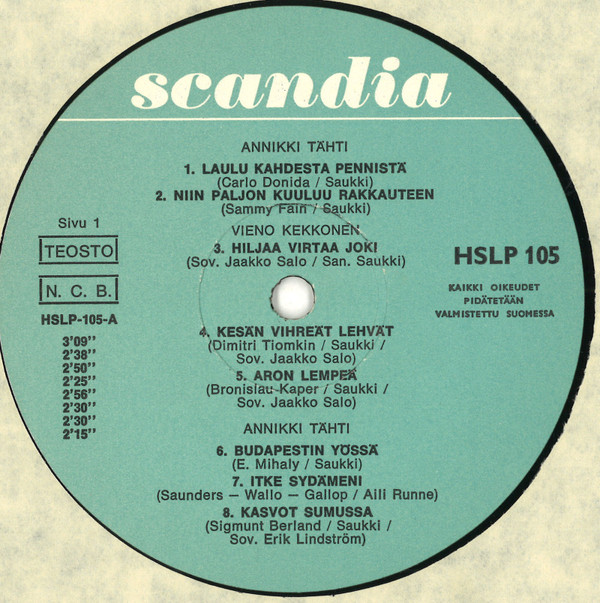 Annikki Tähti Erik Lindströmin Yhtye Arranged By – Erik Lindström Lyrics By [Finnish] – Saukki Written-By – Sigmunt Berland |