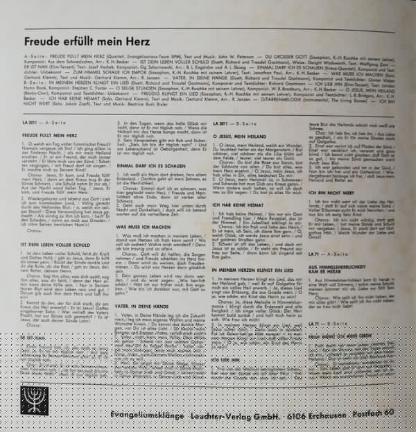 | Лейбл: | Evangeliumsklänge – LA 3011 Leuchter – LA 3011 |