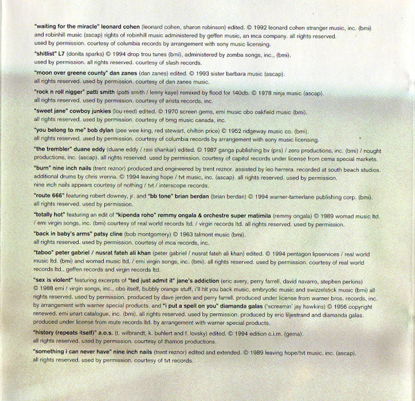 - Compilation Producer [Produced By], Compiled By [Conceived By, Assembled By], Edited By [Computer Editing / Manipulation By] – Trent Reznor