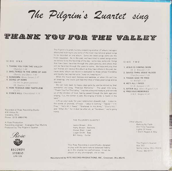 The Pilgrim's Quartet – Thank You For The Valley