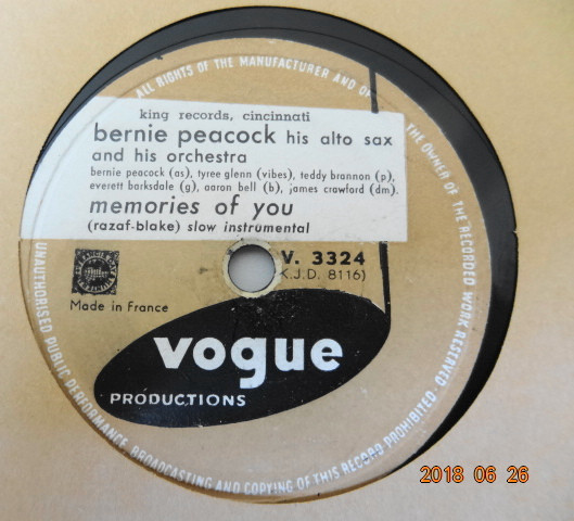 Burnie Peacock & His Orchestra – Memories Of You / Charmaine