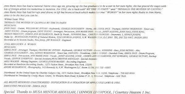 - Vocals – Ann Marie Inniss