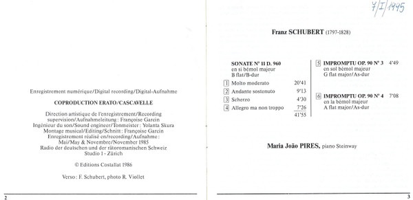 Franz Schubert – Sonate Nº 21 D 960 / Impromptus Nos 3 & 4 Op. 90