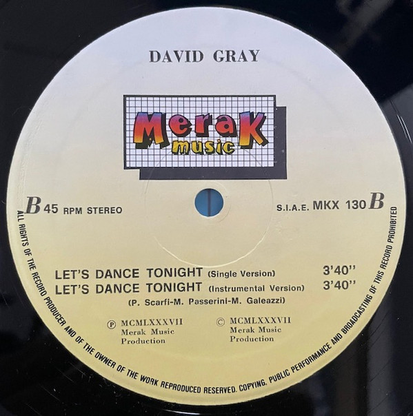 | B1 | Let's Dance Tonight (Single Version) |