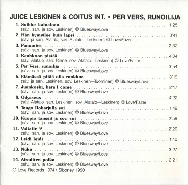 Juice Leskinen & Coitus Int. – Per Vers, Runoilija