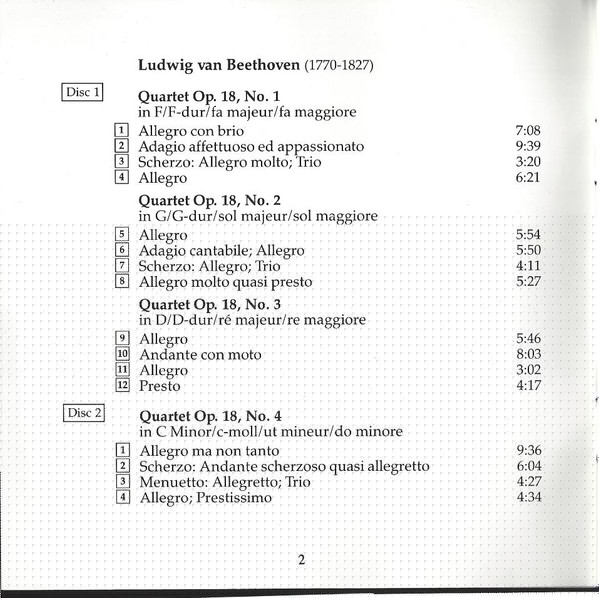 Ludwig van Beethoven – The Early String Quartets Op. 18 / Die Frühen Streichquartette / Les Premiers Quators à Cordes / I Primi Quartetti Per Archi