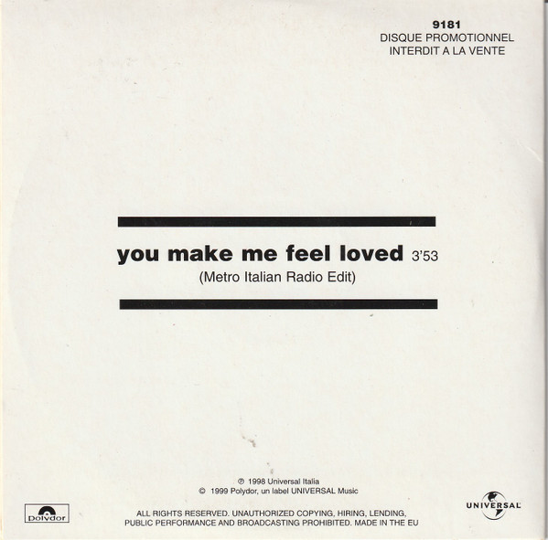 | 1 | You Make Me Feel Loved (Metro Italian Radio Edit) |