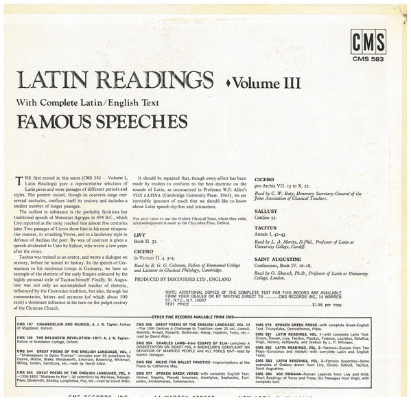 Various – Latin Readings Volume III: 'Famous Speeches'