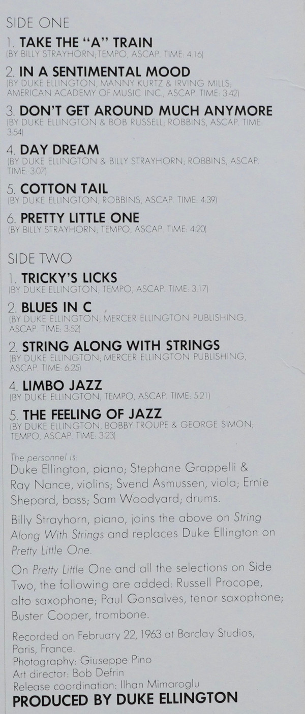 - Piano tracks A1 to A5, B1 to B5 – Duke Ellington