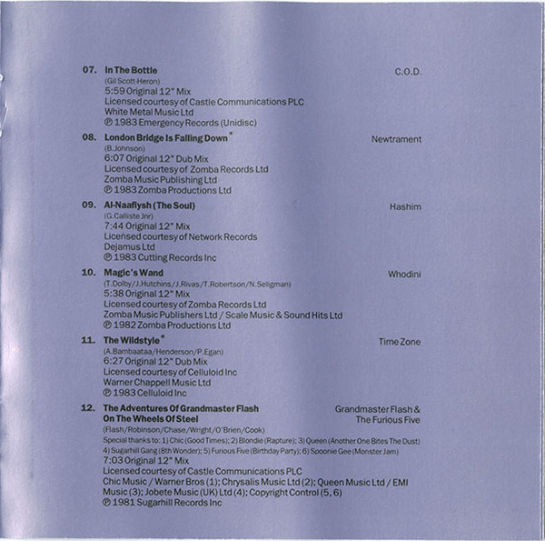 | 12 | The Adventures Of Grandmaster Flash On The Wheels Of Steel (Original 12" Mix) | 7:03 |