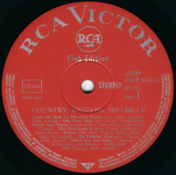 | Лейбл: | RCA Victor – 25 019 RCA Victor – 25019 RCA Victor – SMR 1063-C |